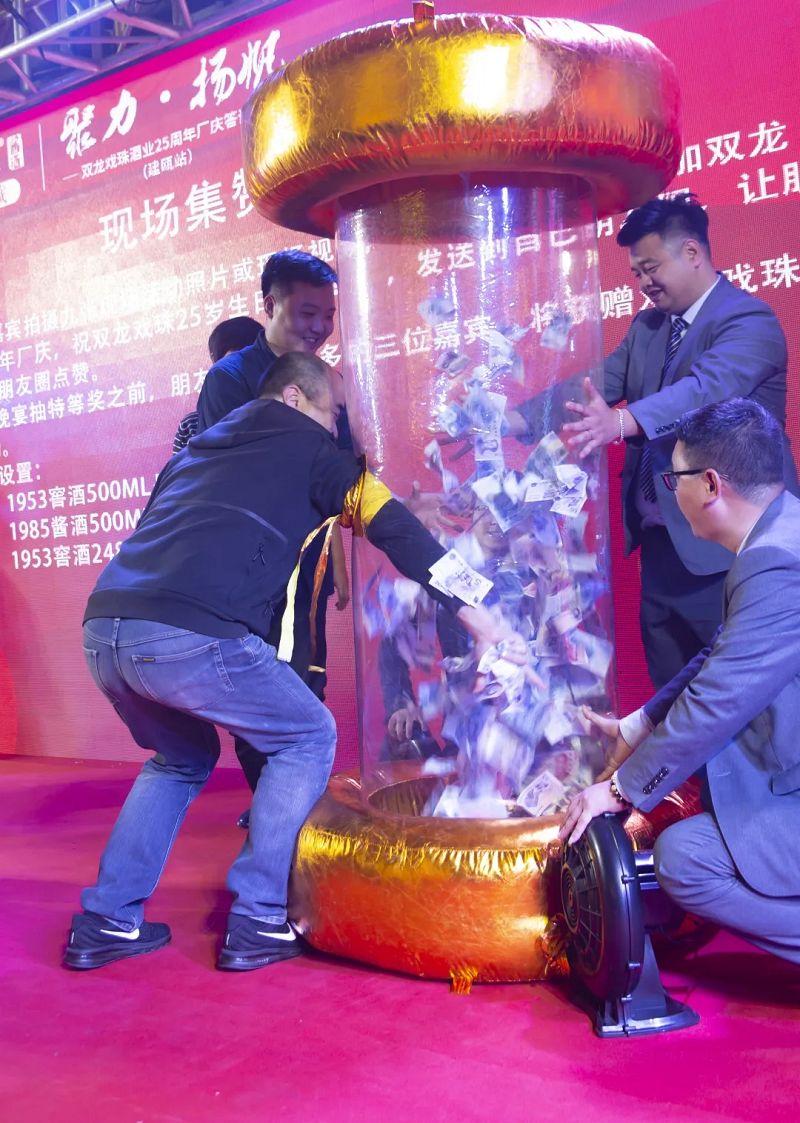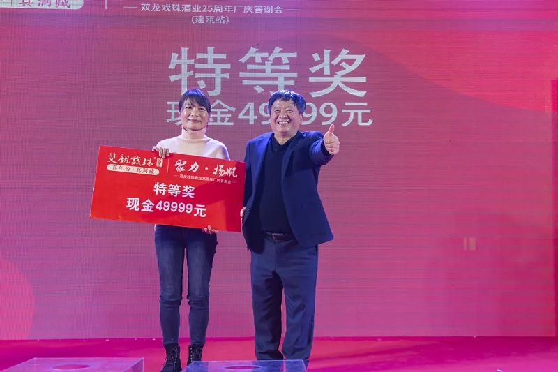 現(xiàn)場還上演了精彩的文藝表演和傳統(tǒng)藝術(shù)川劇變臉?;?dòng)小游戲《抓現(xiàn)金》將現(xiàn)場氣氛推向了最高潮。在每輪節(jié)目過后,現(xiàn)場都抽取了幸運(yùn)觀眾并送出重磅大獎(jiǎng),10克雙龍戲珠金條、5L雙龍戲珠1953洞藏窖酒、華為平板電腦,更有49999元現(xiàn)金大獎(jiǎng)!
