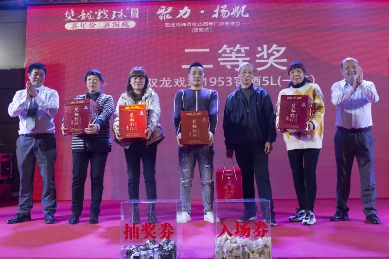 12月11日晚,建甌首場雙龍戲珠酒業(yè)25周年廠慶答謝宴在建甌市福興福大酒店隆重舉行,福建雙龍戲珠酒業(yè)有限公司董事長黃德鋒、建甌市博越食品商行總經(jīng)理鄒華敏出席并致辭。