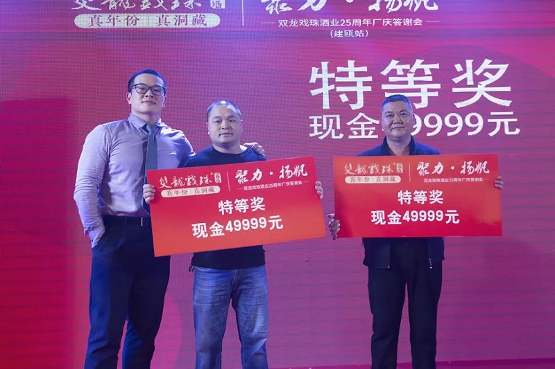 精彩紛呈的文藝表演搭配激動(dòng)人心的抽獎(jiǎng)環(huán)節(jié),讓到場(chǎng)的建甌人民感受到雙龍戲珠酒業(yè)在這個(gè)冬天帶來(lái)的激情與熱情。隨著本場(chǎng)活動(dòng)特等獎(jiǎng)(49999元現(xiàn)金)得主的誕生,現(xiàn)場(chǎng)氛圍瞬間達(dá)到最高潮。值得一提的是,本場(chǎng)活動(dòng)共設(shè)特等獎(jiǎng)兩名,以回饋建甌人民對(duì)于雙龍戲珠酒業(yè)本次廠慶活動(dòng)的大力支持。