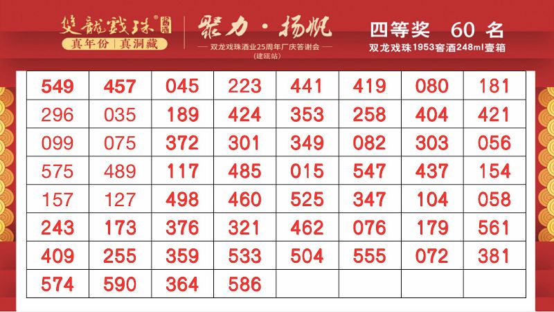 四等獎(jiǎng)中獎(jiǎng)號(hào)碼