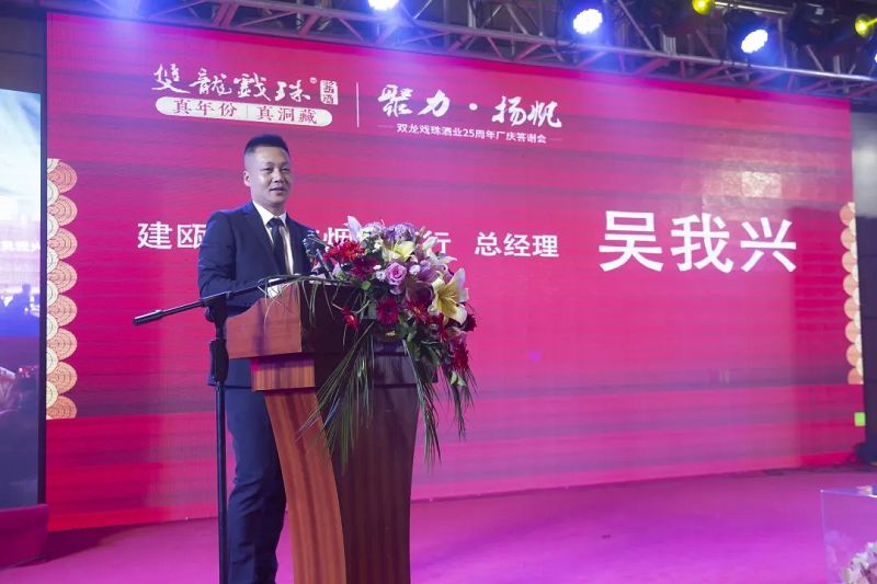 群友煙酒商行總經理吳我興代表各位合作商和廣大消費者對雙龍戲珠酒業(yè)25周年廠慶表示祝賀。他表示,雙龍戲珠酒業(yè)是出色的白酒生產商,更是一個優(yōu)秀的合作伙伴,是經銷商強有力的后盾。
