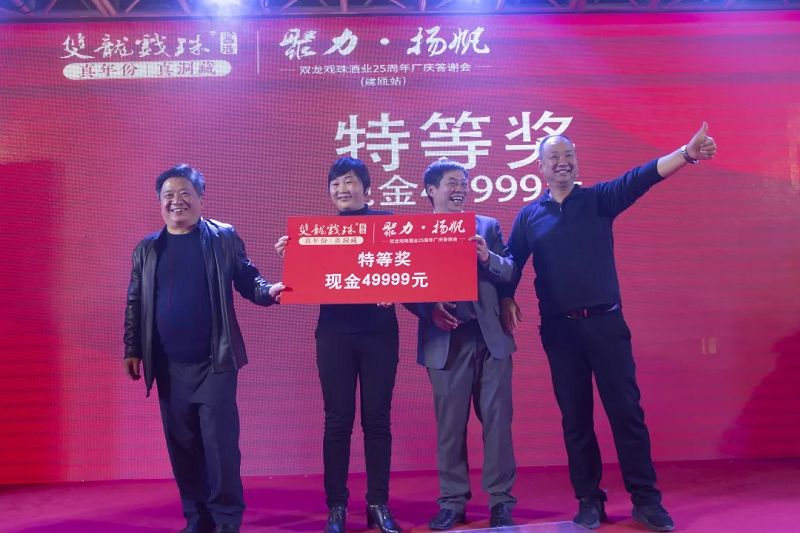25周年廠慶答謝宴又怎么少的了激動人心的抽獎環(huán)節(jié),作為建甌站最后一場答謝宴活動,今晚再次誕生一位特等獎得主。自廠慶活動開始以來,已有5位幸運者獲得49999元現金大獎,現場更有10克雙龍戲珠金條、5L雙龍戲珠1953洞藏窖酒、華為平板電腦等眾多好禮回饋。