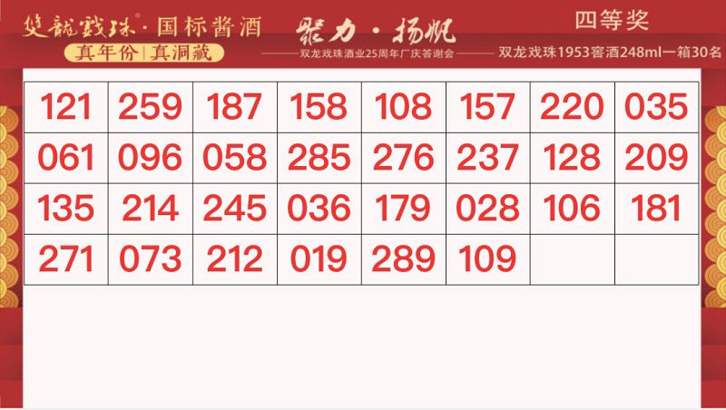 四等獎(jiǎng)中獎(jiǎng)號(hào)碼