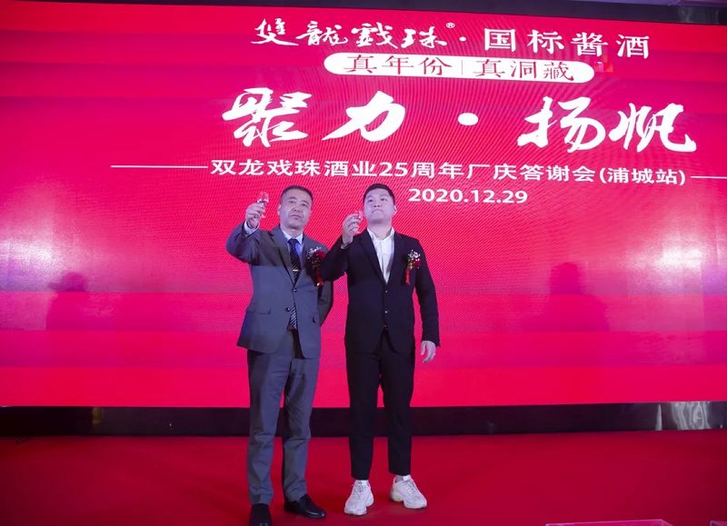 12月29日,雙龍戲珠酒業(yè)25周年廠慶答謝宴(浦城站)在浦城縣浦城大酒店隆重舉行。雙龍戲珠酒業(yè)營銷總監(jiān)黃兆茂、浦城縣盛興食品商行總經(jīng)理胡葉楠出席活動(dòng)并致辭。