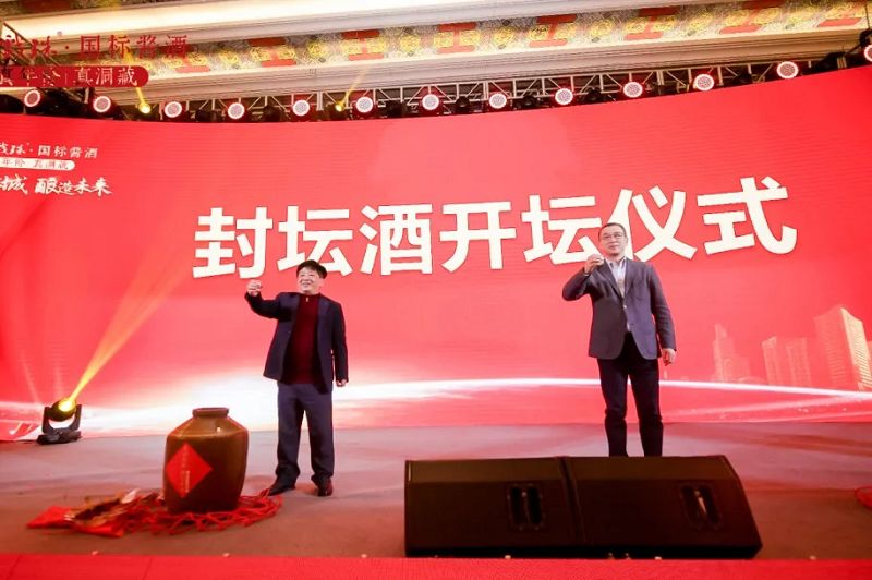 現(xiàn)場舉行了封壇儀式,眾位領(lǐng)導(dǎo)、嘉賓共同上臺,將對雙龍戲珠的美好祝愿珍藏在至臻美酒中。
