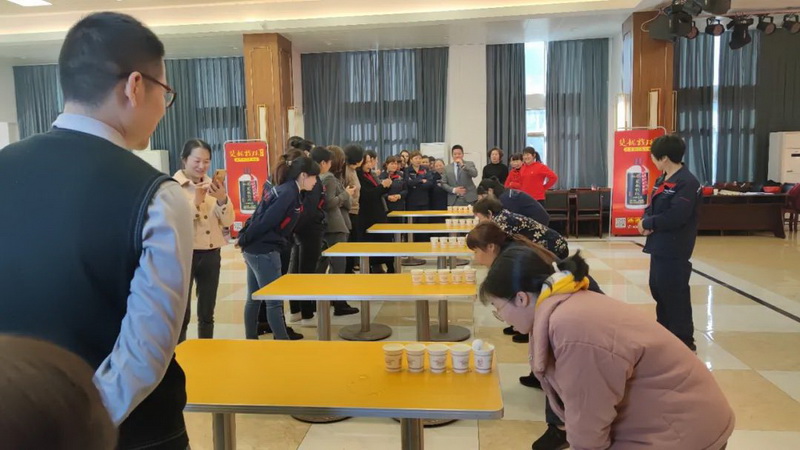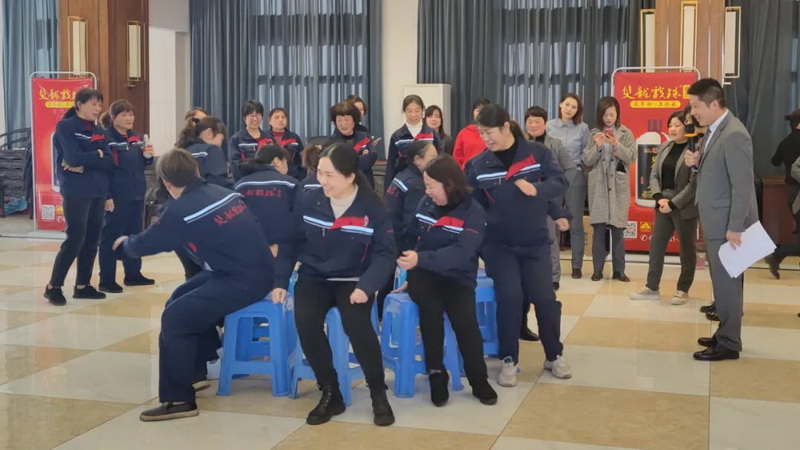 下午15時(shí),在雙龍戲珠酒業(yè)10樓多功能廳,乒乓球團(tuán)隊(duì)接力、吹乒乓球、搶凳子游戲和全員博餅活動(dòng)接連上演。女職工之間配合默契,現(xiàn)場(chǎng)充滿了大家的歡聲笑語。
