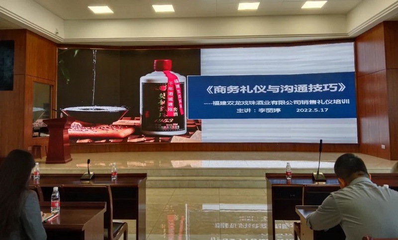 5月16日-17日,曲成管理咨詢公司總經理蘇元輝、禮儀培訓專家老師李麗婷應邀為雙龍戲珠酒業(yè)開展營銷指導、商務禮儀等內容培訓。福建雙龍戲珠酒業(yè)有限公司董事長黃德鋒、總經理黃盛堯、營銷總監(jiān)黃兆茂和雙龍戲珠酒業(yè)全體營銷人員參加。