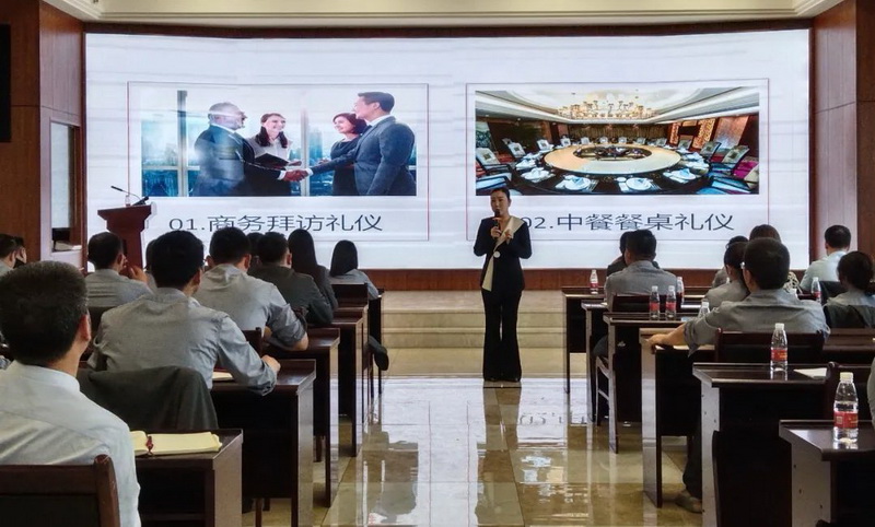 在商務禮儀培訓課上,李麗婷老師圍繞商務拜訪禮儀和中餐餐桌禮儀進行了細致的講解;并以實際場景、妝容穿著等,對職場中的文明禮儀進行解說,使大家對商務禮儀有了更深入的了解。
