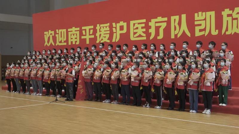6月10日,南平援滬醫(yī)療隊100名隊員結(jié)束14天的集中休整。當(dāng)天上午,南平市委市政府在建陽區(qū)舉行歡迎儀式,迎接全體隊員回家。