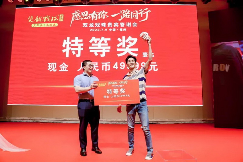 雙龍戲珠酒業(yè)總經理黃盛堯在致辭中說道,6月以來,我們接連組織了多場回饋廣大消費者的雙龍戲珠貴賓答謝會,多地聯(lián)動,品牌熱議;雙龍戲珠的發(fā)展離不開大家的支持,發(fā)展的成果也將與大家共享。希望我們一路同行,共同譜寫新的篇章!
