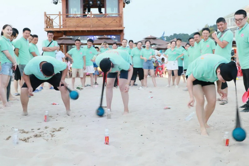 7月16日從溫州市區(qū)出發(fā),途經(jīng)洞頭漁村,雙龍戲珠團(tuán)隊(duì)終于抵達(dá)最后的目的地--韭菜岙沙灘,“怪獸過河”、“絲襪保齡球”、“三人兩足”等活動(dòng)接連上演,歡笑聲瞬間就讓整片沙灘變成雙龍戲珠的主場(chǎng)。分組參與的方式,更讓大家明白“團(tuán)結(jié)協(xié)作,合作共贏”既是團(tuán)隊(duì)的靈魂,也是工作的核心。