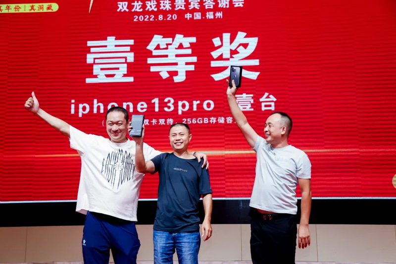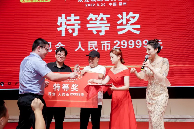 潮起閩北,聯(lián)動八閩。地處千年酒城建甌的福建雙龍戲珠酒業(yè)正不斷發(fā)掘白酒歷史底蘊(yùn),堅(jiān)定福酒文化自信,在福建白酒發(fā)展浪潮中勇立潮頭!晚宴現(xiàn)場還隨機(jī)抽取了幸運(yùn)觀眾并送出五輪重磅大獎,iPhone手機(jī)、10克金條、華為手表,更有特等獎29999元現(xiàn)金大獎!