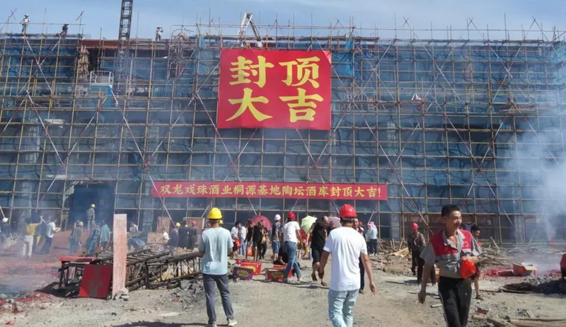 △雙龍戲珠酒業(yè)桐源基地陶壇酒庫封頂
