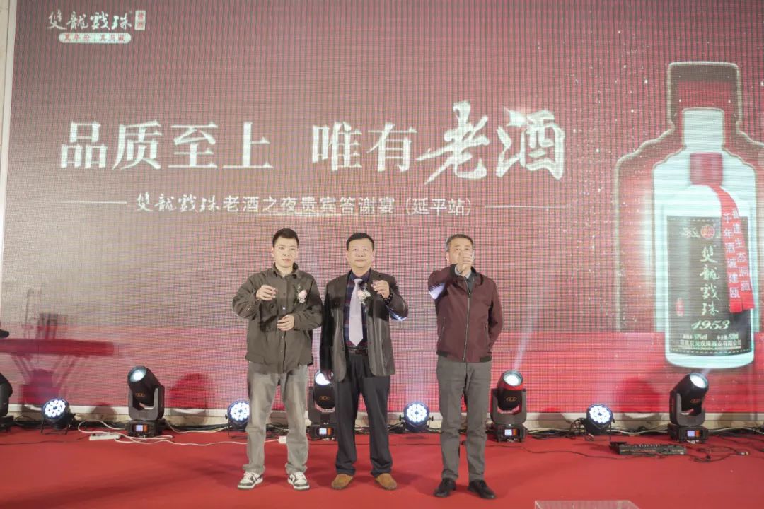 以酒為媒,以酒會(huì)友!12月3日-4日,以“品質(zhì)至上 唯有老酒”為主題的雙龍戲珠老酒之夜貴賓答謝宴(延平站)在延平區(qū)九峰大廈3樓宴會(huì)廳連開兩場(chǎng)。福建雙龍戲珠酒業(yè)有限公司營(yíng)銷總監(jiān)黃兆茂、延平區(qū)龍棲貿(mào)易有限公司總經(jīng)理潘建國(guó)、延平區(qū)聯(lián)順貿(mào)易有限公司總經(jīng)理鄭立新出席活動(dòng)并致辭。
