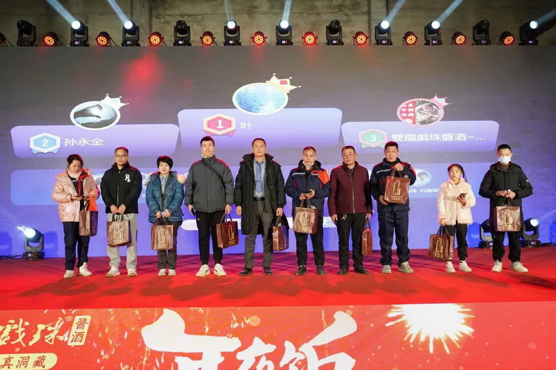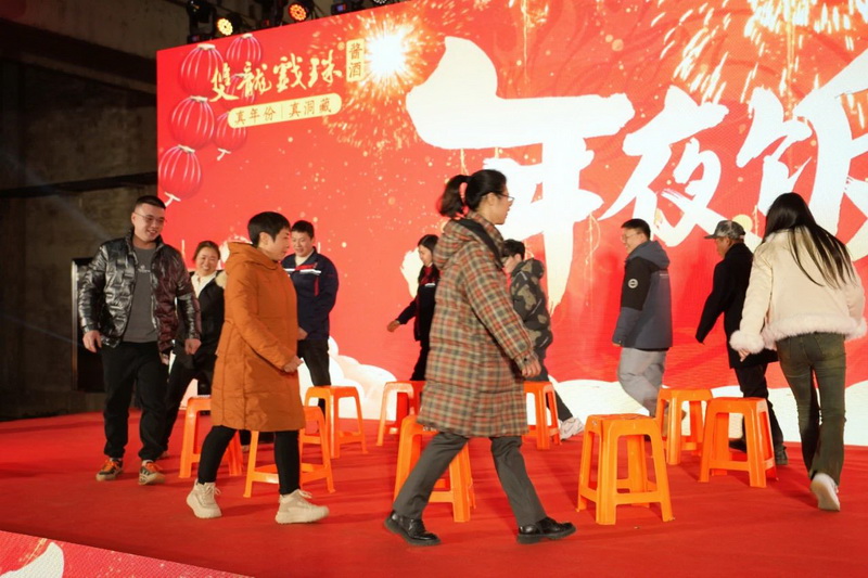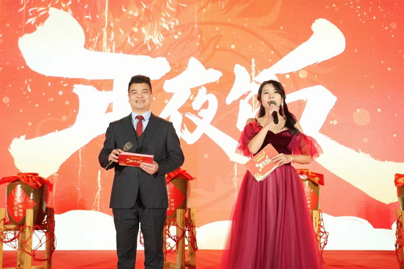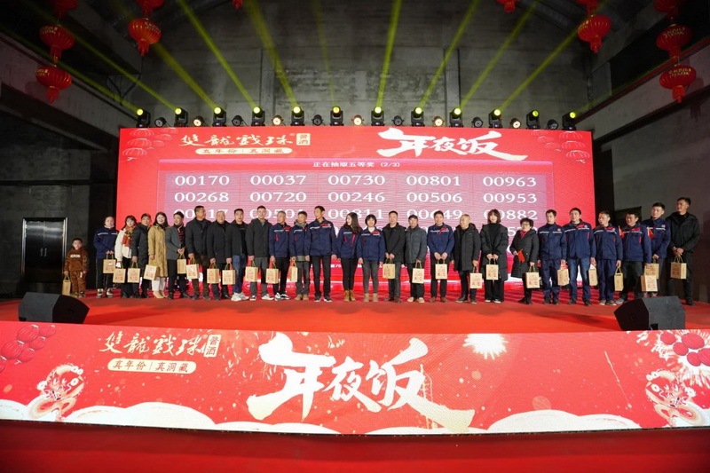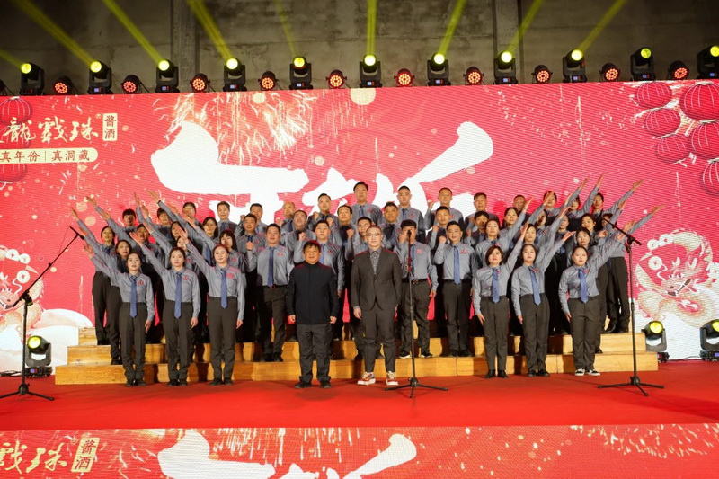 相聚的時(shí)光令人難忘,雙龍戲珠酒業(yè)年夜飯?jiān)跓熁ū硌莸臍夥罩新湎箩∧?,雙龍人們滿懷期望,攜手共赴2024新征程。