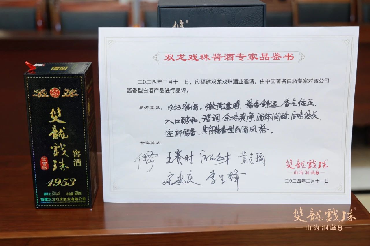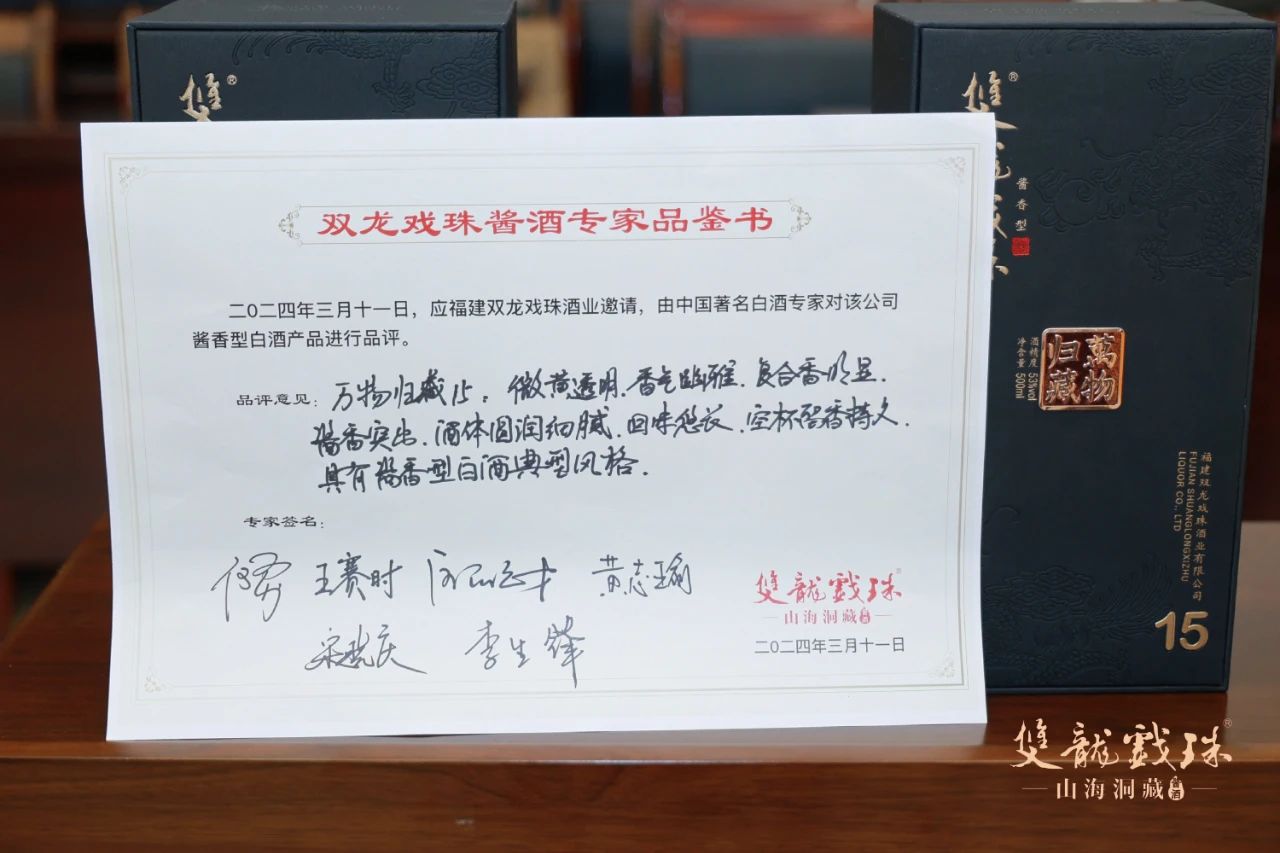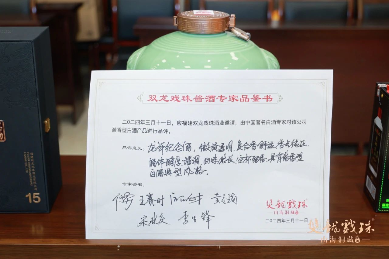 3月11日,中國酒業(yè)協(xié)會秘書長何勇、中國酒史學家王賽時、國家一級品酒師黃志瑜、國家一級品酒師宋曉慶、國家白酒評委歐陽元財、福建雙龍戲珠酒業(yè)有限公司總工程師李生鋒六位專家齊聚雙龍戲珠,對雙龍戲珠萬物歸藏15、1953窖酒、龍年紀念酒進行了現(xiàn)場權威鑒評,并給出了綜合評價。