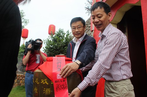 2011年5月25日,由“中國白酒專家組副組長、江蘇省釀酒協(xié)會會長、白酒界泰斗沈怡方”;“四川省釀酒協(xié)會副會長陳吉福”;“四川省釀酒研究所所長吳亞東”;“ 四川省釀酒研究所副所長、國家青年白酒專家楊官榮”;“瀘州老窖副總經(jīng)理、國窖1573酒體設計者張宿義”;郎酒集團酒體設計中心副主任程偉“;對雙龍戲珠酒進行鑒評后,在公司雙龍洞前為雙龍戲珠酒進行封壇洞藏。