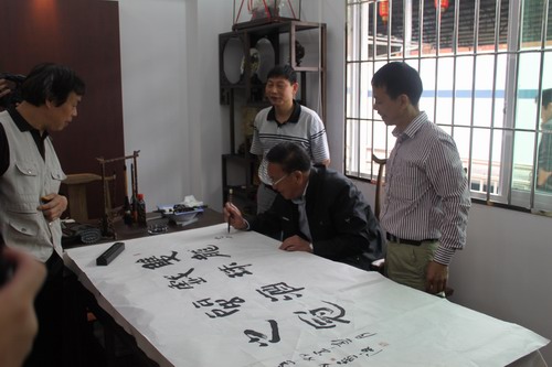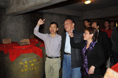 2011年5月25日,沈老在參加完“雙龍戲珠酒專家鑒評會”后,在總經(jīng)理馮敏的陪同下參觀雙龍戲珠酒業(yè),從釀造車間、研發(fā)中心、罐裝車間、雙龍洞每到一處沈老都饒有興趣停下來仔細(xì)觀察和總經(jīng)理一起探討釀造工藝,對我公司獨(dú)創(chuàng)的“六糧釀造及洞藏”給予了很高的評價,沈老說在福建能釀出多糧濃香型白酒實(shí)屬不易呀,勉勵我們要堅(jiān)持原漿釀造,為福建的白酒事業(yè)做出貢獻(xiàn),參觀后沈老還和眾專家一起為雙龍戲珠酒題詞“雙龍戲珠、閩酒之冠”。