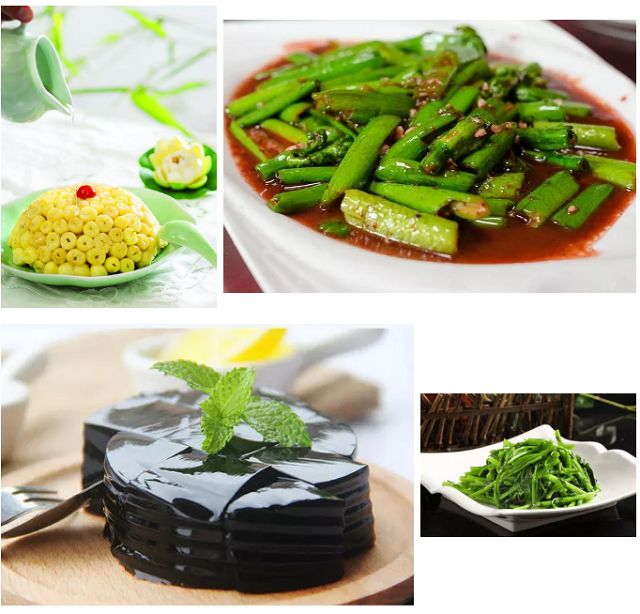 特別值得一提的還有“吉陽四寶”這道名菜。由于當(dāng)?shù)鬲毺氐臍夂?、水文、土壤等區(qū)域小環(huán)境,當(dāng)?shù)爻霎a(chǎn)聞名遐邇的建澤瀉、建吉蓮、仙人草、水空心菜等特產(chǎn),素稱“吉陽四寶”。而用這些食材烹制出的糟香澤瀉花、扣蒸建白蓮、蒜茸水空心菜、甜湯仙人草,不僅滋陰補腎,而且養(yǎng)顏抗老,堪稱人間美味,是吉陽四寶小鎮(zhèn)和吉陽葛老莊農(nóng)家樂的招牌菜。