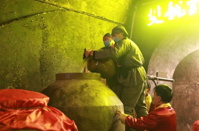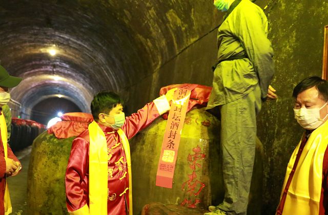 封壇儀式上,董事長黃德鋒,總經(jīng)理黃盛堯帶領(lǐng)雙龍戲珠釀酒人護送今年的第一鍋春釀酒緩緩步入雙龍洞,分別將兩壇50斤的春釀酒倒入東南第一大壇——濃香母壇和醬香母壇。母壇總?cè)萘?000斤,每年二月二加入50斤第一鍋春釀酒,母壇加滿需要60年,今年已經(jīng)是第十九年了,加滿后每年二月二打出50斤給來賓品嘗,再加入50斤進去,以此循環(huán),讓這兩壇酒將來成為雙龍戲珠打造百年酒企的實物見證!