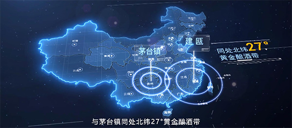 建甌生態(tài)環(huán)境與茅臺(tái)鎮(zhèn)地處北緯27°黃金釀酒帶。無霜期長(zhǎng)、溫差小、高山環(huán)抱,地形仿佛就是個(gè)巨大的酒甑;雨熱同季的氣候,使得建甌的空氣和土壤最適宜釀酒所需的微生物生長(zhǎng)。